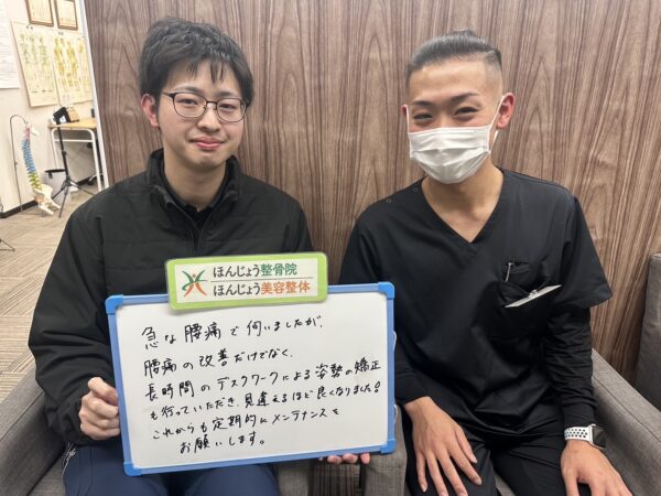 北九州 八幡西区にあります、ほんじょう整骨院 美容整体では腰痛、腰の痛みだけを見るのではなく、全身の状態から痛みの原因を見つけ患者様に最善の施術を行います。